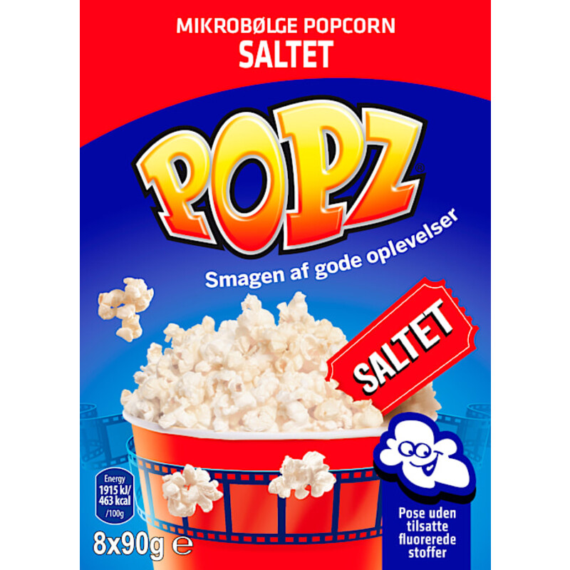 Popcorn m. salt til mikrobølgeovn (8x90g) Popz Microwave Popcorn saltet har den helt klassiske popcornsmag, som du kender den. Popcornene er tilsat salt og de er færdigpoppede efter få minutter i mikrobølgeovn. Server popcornene til en god film. 44,95 kr Køb